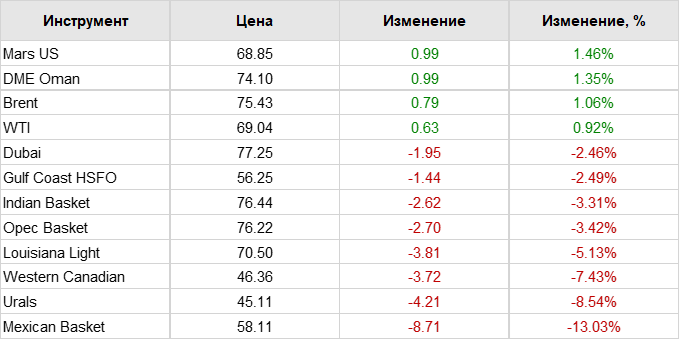 Нефть. Цены по сортам на 17 марта 2023