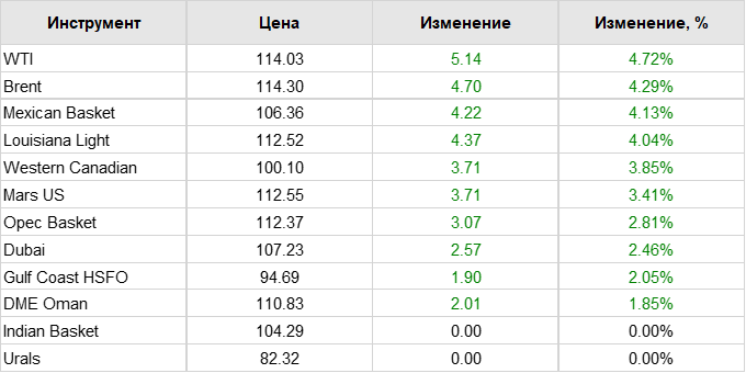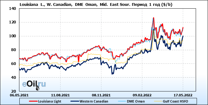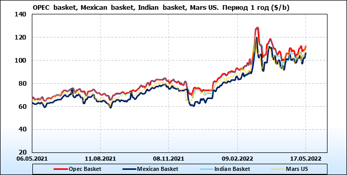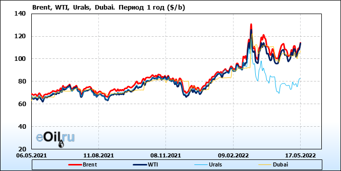 Нефть. Цены по сортам на 17 мая 2022