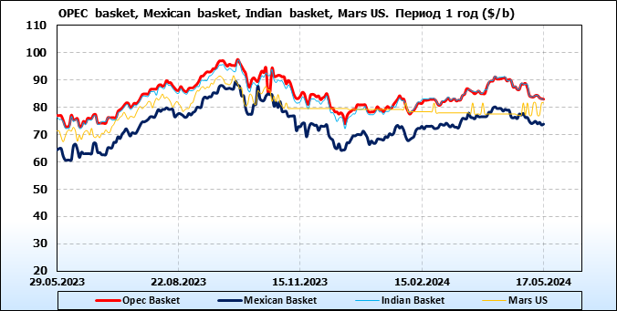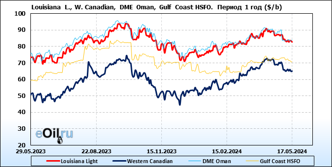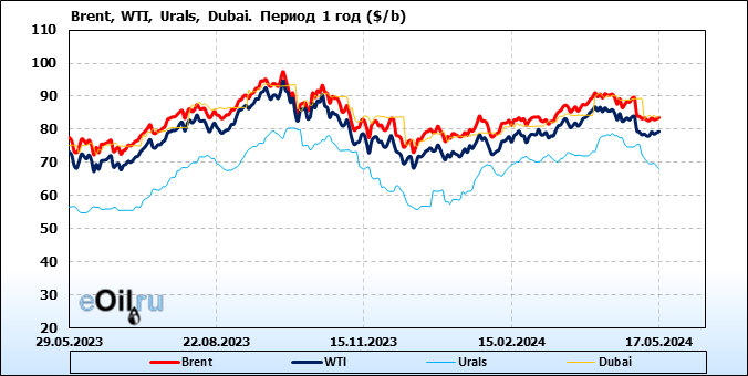 Нефть. Цены по сортам на 17 мая 2024