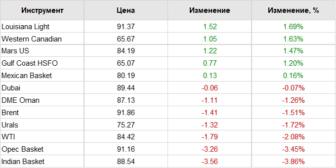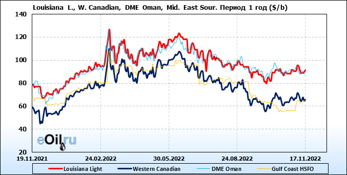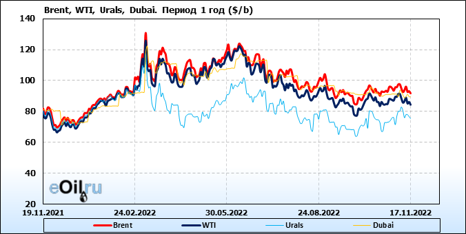 Нефть. Цены по сортам на 17 ноября 2022