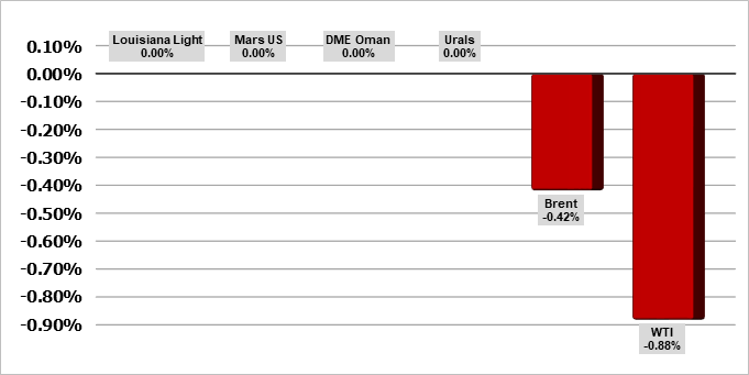 По данным торгов, к шести утра по московскому времени цены на нефть североморского сорта Brent снижались на 0,68%, до 57,16 долларов. Нефть западнотехасского сорта WTI подешевела на 0,55%, до 52,03 долларов за бочку.