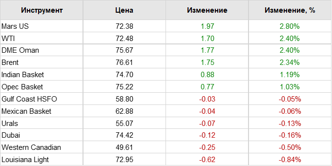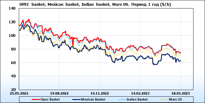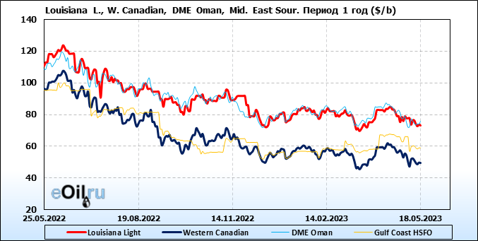 Нефть. Цены по сортам на 18 мая 2023