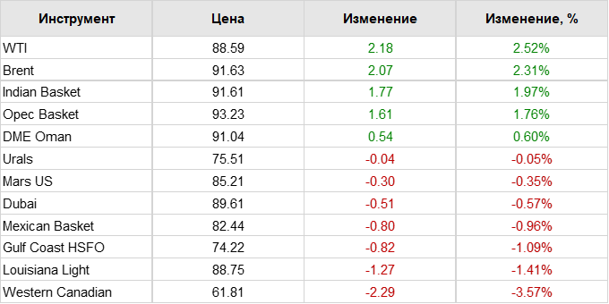 Нефть. Цены по сортам на 18 октября 2023