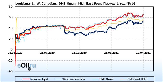 Нефть. Цены по сортам на 19 апреля 2021