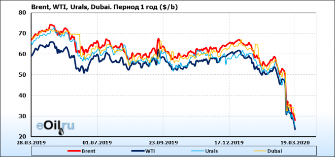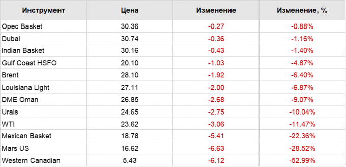 Нефть вернулась к уровню мая 2003 года. Стоимость майских фьючерсов на марку Brent на Лондонской бирже ICE упала на 13,3%. Бочка нефти снова стоит менее 25 долларов. Нефть WTI просела в цене еще больше. Баррель WTI потерял в цене 21,3%. Теперь западно-техасское черное золото торгуется на отметке 21,5 доллара.