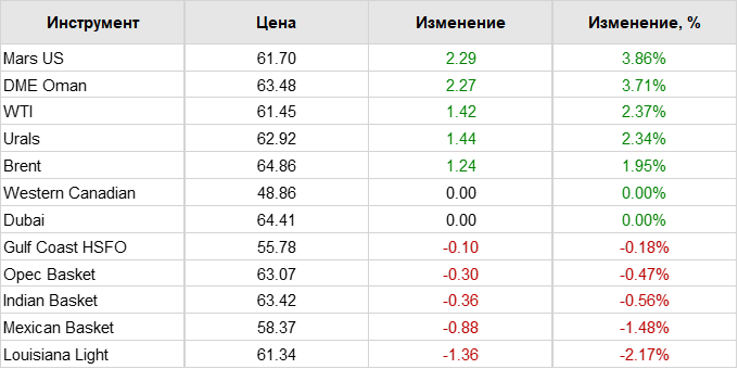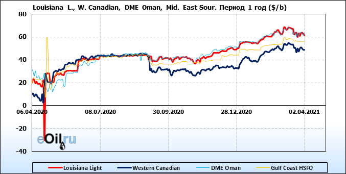 Нефть. Цены по сортам на 2 апреля 2021