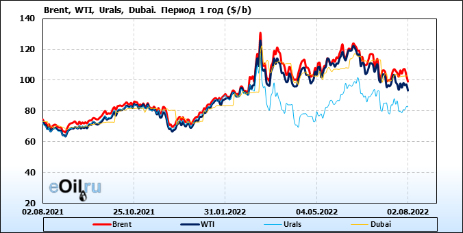Нефть. Цены по сортам на 2 августа 2022