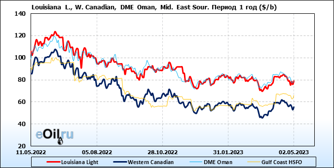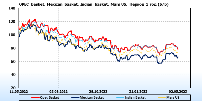 Нефть. Цены по сортам на 2 мая 2023