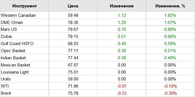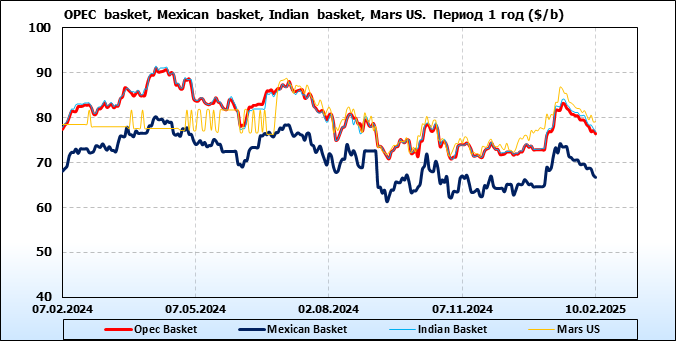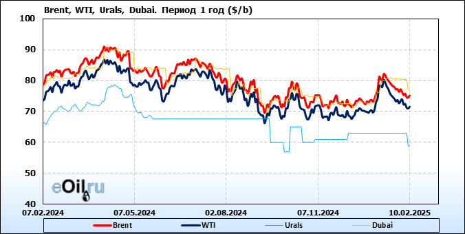 Нефть. Цены по сортам на 20 февраля 2025