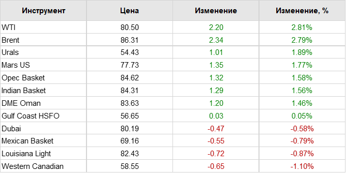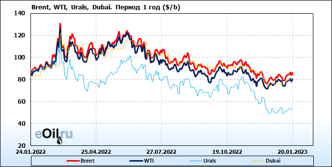 Нефть. Цены по сортам на 20 января 2023