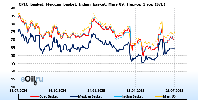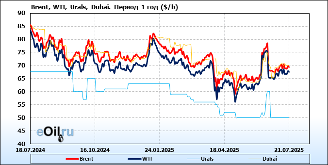 Каллас упомянула снижение потолка цен, но не назвала его новых ценовых параметров. С конца 2022 г. он установлен странами G7 на отметке не выше $60 за баррель – компаниям из этих юрисдикций запрещено перевозить и страховать российскую нефть по цене выше этой отметки (а также, с 2023 г. – нефтепродукты дороже $100/барр. и мазут дороже $45/барр.). По данным лондонской биржи ICE, на момент объявления о предварительном согласовании нового санкций ЕС сентябрьский фьючерс нефти марки Brent торговался на отметке $70,01 баррель, октябрьский – $68,9.