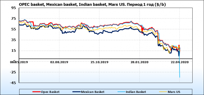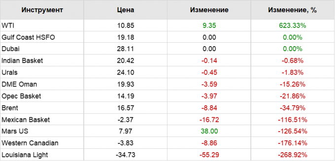 Так, в ходе торгов цена на нефть Brent опускалась до отметки $15,99. При этом июньские фьючерсы на нефть марки WTI падают до $11,19.