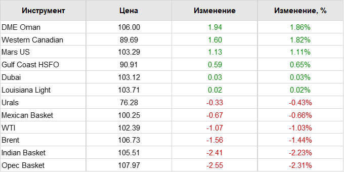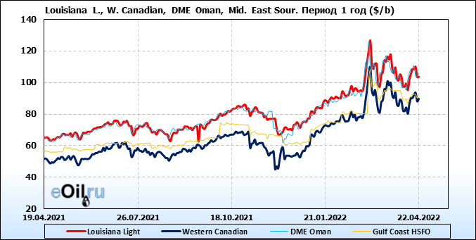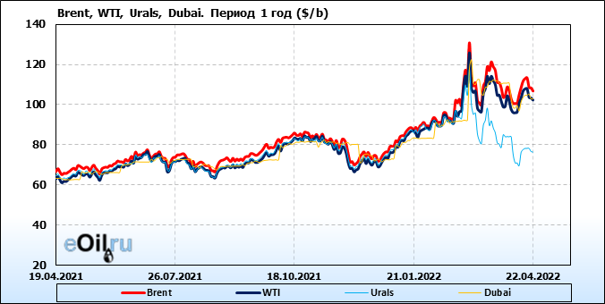 Нефть. Цены по сортам на 22 апреля 2022