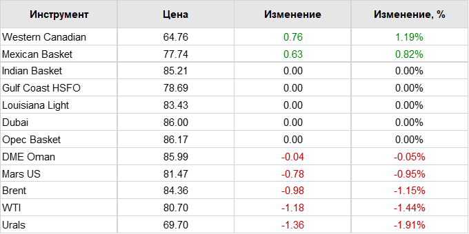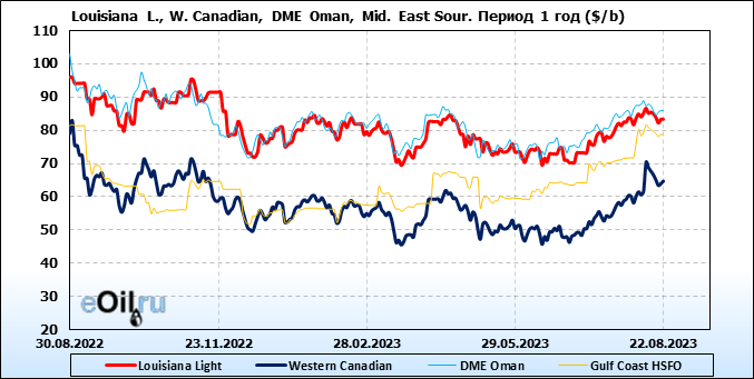 Нефть. Цены по сортам на 22 августа 2023