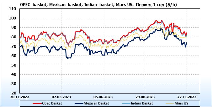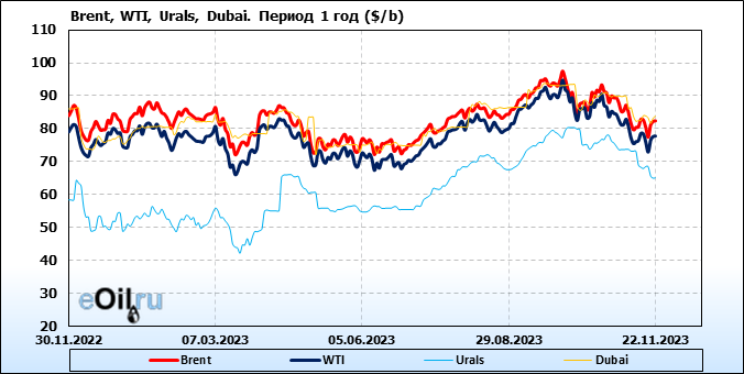Нефть. Цены по сортам на 22 ноября 2023