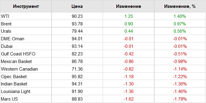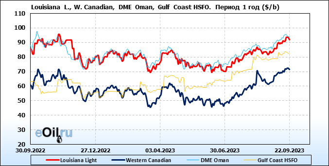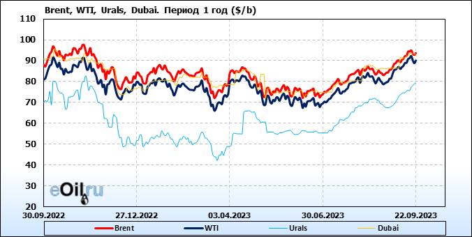 Нефть. Цены по сортам на 22 сентября 2023