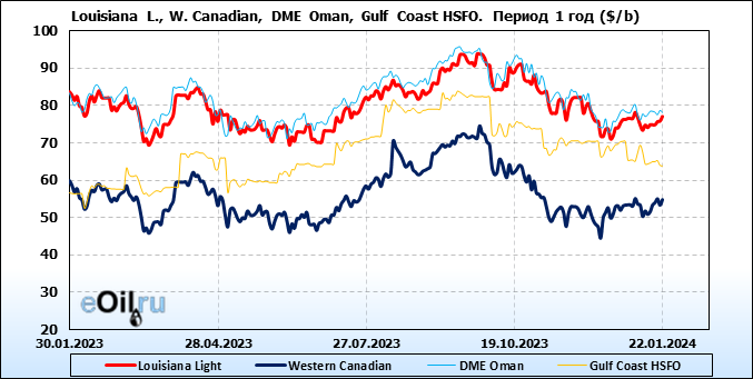Нефть. Цены по сортам на 22 января 2024