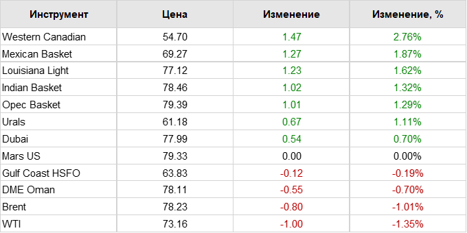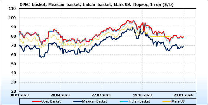 Нефть. Цены по сортам на 22 января 2024