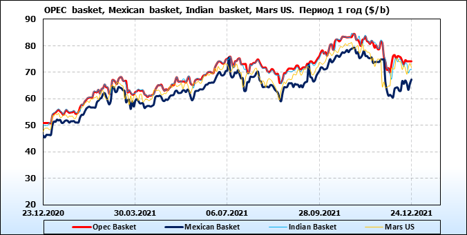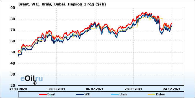 К концу недели цены на европейскую нефть отыграли чувствительное падение 20 декабря и фактически вернулись к максимумам этого месяца. Стоимость североморской Brent достигла $76 за баррель, российская Urals подорожала до $74. Новый штамм коронавируса уже не оказывает значительное влияние на поведение инвесторов, а ужесточение риторики ФРС сочетается с улучшением прогнозов по росту экономики, отмечают эксперты. Поэтому до конца года они ожидают сохранения цен в диапазоне $75–80 за баррель.