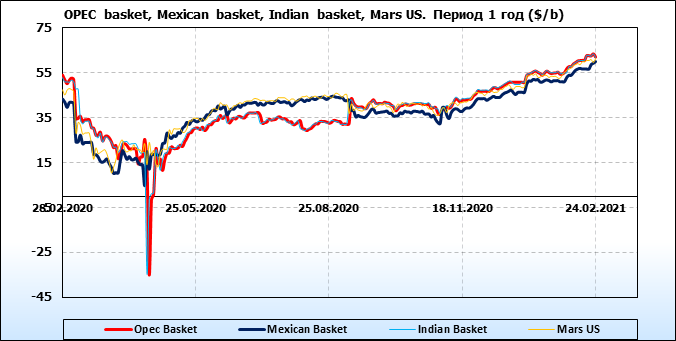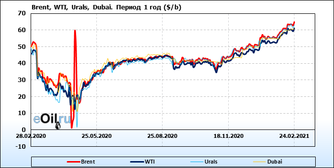 После бурного роста в начале недели цены на нефть Brent вернулись ниже 65 долл./барр. Предварительная статистика от API показала рост запасов сырой нефти на 1,03 млн барр., вопреки ожиданиям снижения. Сегодня выйдут официальные данные Минэнерго США, скорее всего, они будут схожими: из-за простоя НПЗ на прошлой неделе спрос на сырье резко снизился, что привело к формированию избыточных запасов. В ближайшее время ключевым событием выступает заседание стран ОПЕК+ 3-4 марта, где могут быть изменены текущие квоты на добычу.