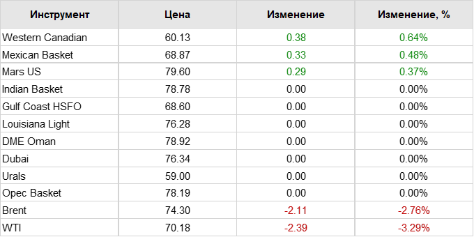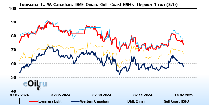 Нефть. Цены по сортам на 24 февраля 2025