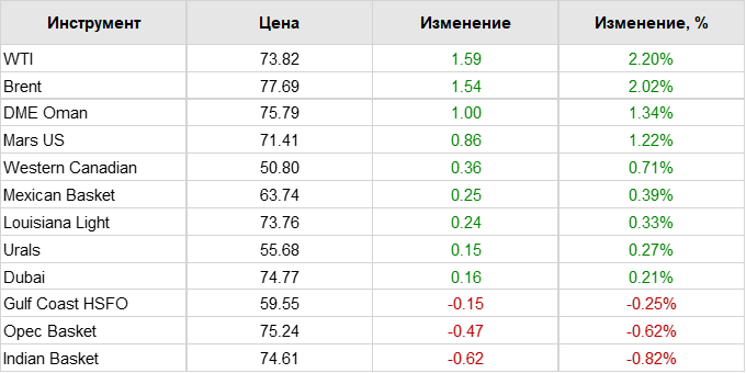 Нефть. Цены по сортам на 24 мая 2023