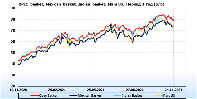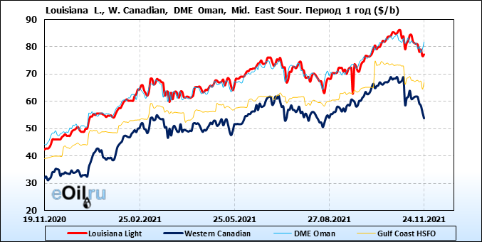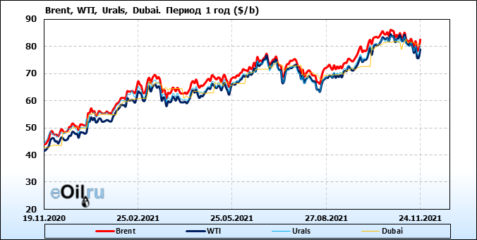 Нефть. Цены по сортам на 24 ноября 2021