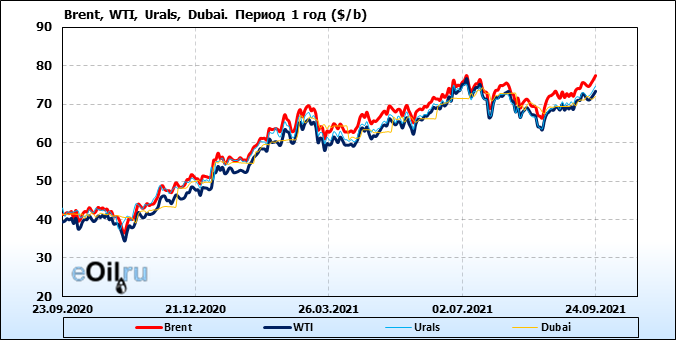 Стоимость европейской нефти Brent 23 сентября впервые за два с половиной месяца поднялась выше уровня $77 за баррель. По данным агентства Reuters, котировки ближайшего контракта на поставку североморской нефти поднимались на 1,4% до $77,21 за баррель, максимального значения с 6 июля. За два дня цены выросли почти на 4%.