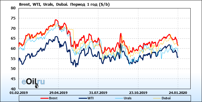 В пятницу на рынке нефти отмечаются коррекционные настроения после сильного спада в течение предыдущих трех дней, в совокупности достигавшего почти 5%. Такая динамика была обусловлена ситуацией вокруг нового типа коронавируса, обнаруженного в Китае. Трейдеры опасаются, что его быстрое распространение приведет к эпидемии и негативно отразится на всей мировой экономике и спросе на сырье в том числе.