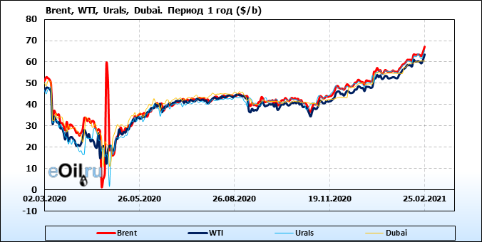 Стоимость европейских сортов нефти обновила максимумы с начала 2020 года: котировки североморской Brent превысили $67 за баррель, российской Urals достигли $66 за баррель. С начала года цены на топливо выросли почти на треть. Этому способствовали улучшение эпидемиологической ситуации в мире, низкие объемы добычи странами ОПЕК, аномально холодная зима в США и Европе. В таких условиях аналитики Bank of America не исключают роста цен во втором квартале до $70 за баррель.