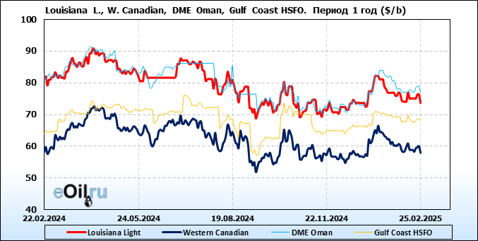 Нефть. Цены по сортам на 25 февраля 2025