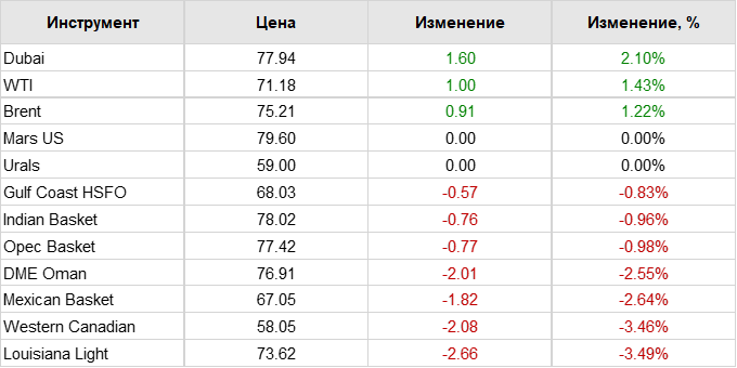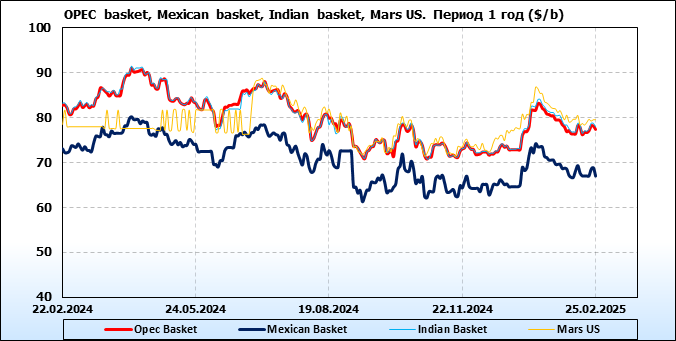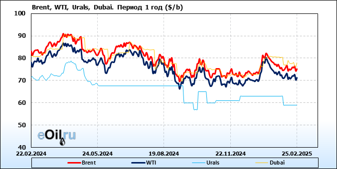 Нефть. Цены по сортам на 25 февраля 2025