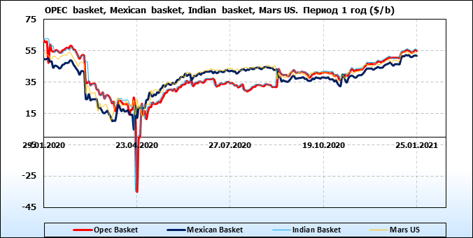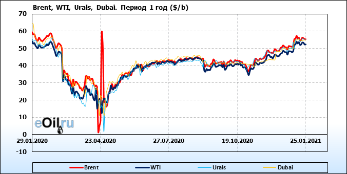 Нефть. Цены по сортам на 25 января 2021