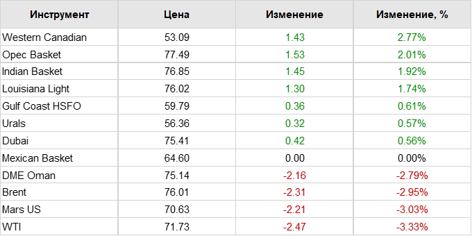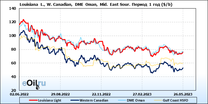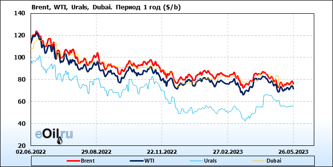 Нефть. Цены по сортам на 26 мая 2023