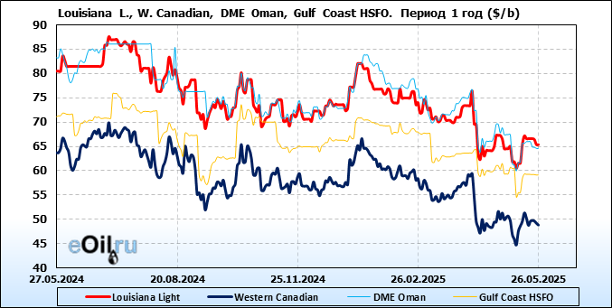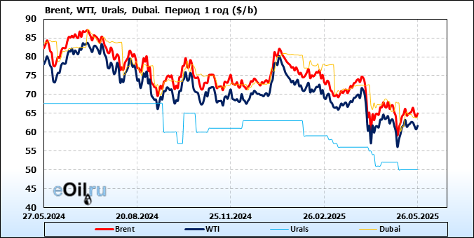 Нефть. Цены по сортам на 26 мая 2025