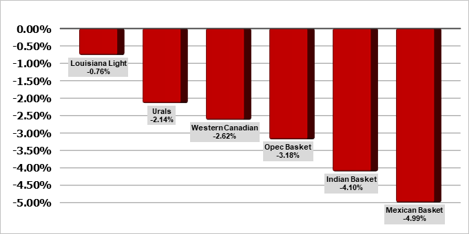Поставки из России за тот же период составили 1,4 млн тонн, что соответствует 628 млн евро. В июле прошлого года РФ отправила в Европу 8,1 млн тонн нефти (около 19% от её общего импорта). Но после вступления в силу с 5 декабря прошлого года эмбарго в отношении поставок российской нефти морским путём она продолжает поступать только некоторым странам ЕС, которые на момент введения рестрикции были наиболее зависимы от снабжения из России, в основном через нефтепровод «Дружба». Ожидается, что этот переходный период завершится в 2024 году.