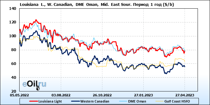 Нефть. Цены по сортам на 27 апреля 2023