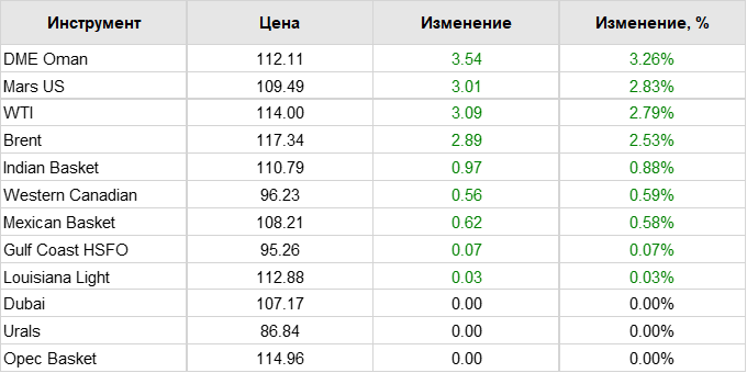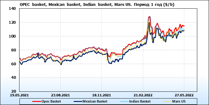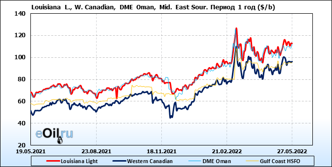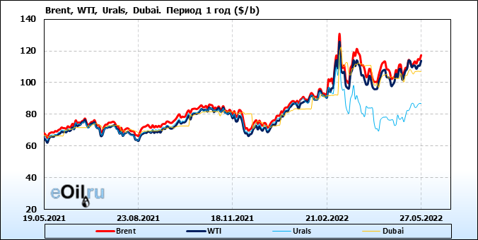 Нефть. Цены по сортам на 27 мая 2022