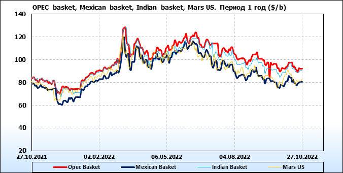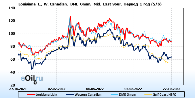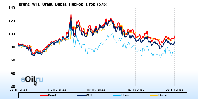 Нефть. Цены по сортам на 27 октября 2022