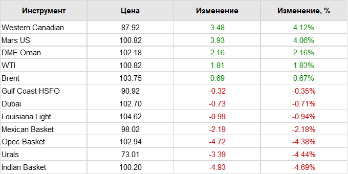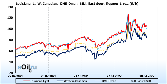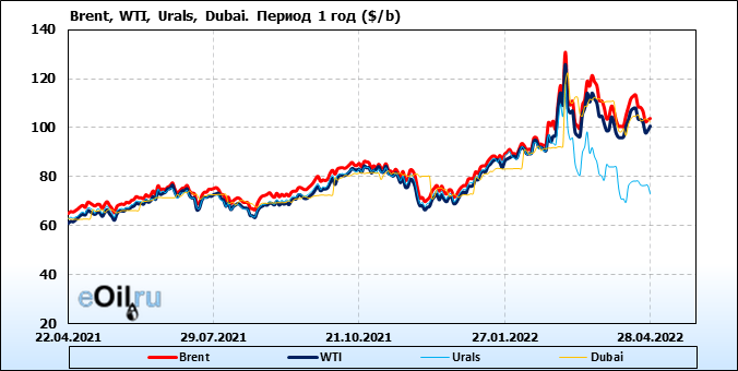 Нефть. Цены по сортам на 28 апреля 2022