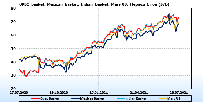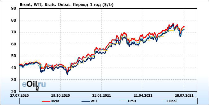 Нефть. Цены по сортам на 28 июля 2021
