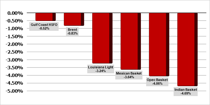 Котировки нефти снижаются в среду на сообщении Американского института нефти (API) о росте нефтяных запасов в США на прошлой неделе.
