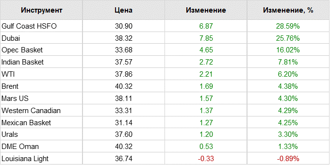 Июльские фьючерсы на WTI к этому времени дорожали на электронных торгах Нью-йоркской товарной биржи (NYMEX) на $0,81 (2,20%) — до $37,62 за баррель. За предыдущую сессию контракт подорожал на $1,37 (3,9%) до $36,81 за баррель.