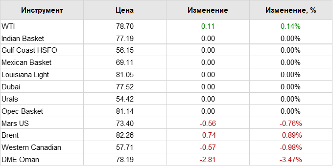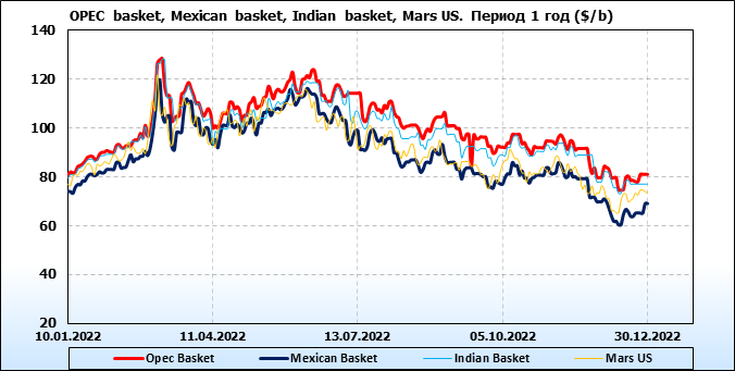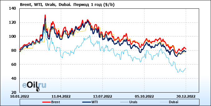 Нефть. Цены по сортам на 30 декабря 2022