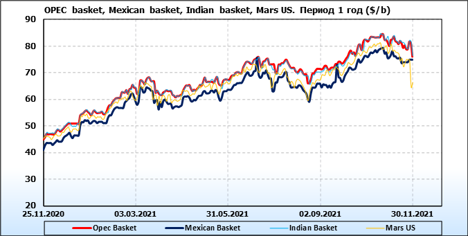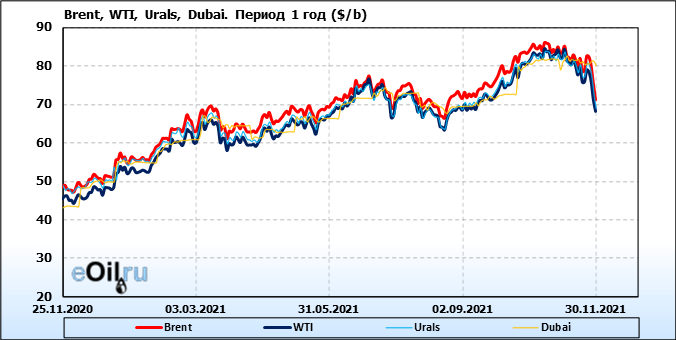 Нефть. Цены по сортам на 30 ноября 2021