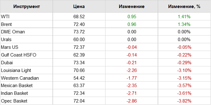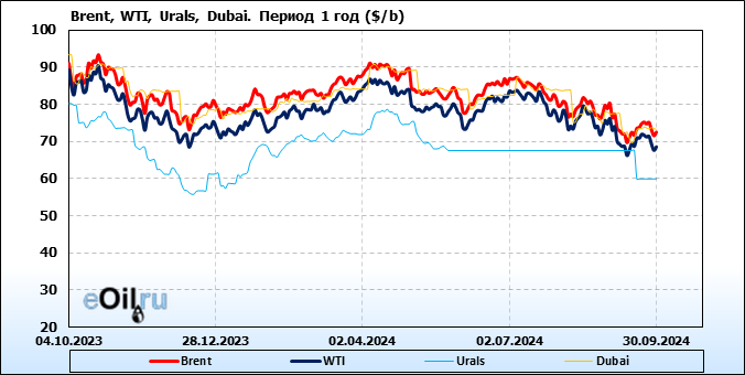 Нефть. Цены по сортам на 30 сентября 2024