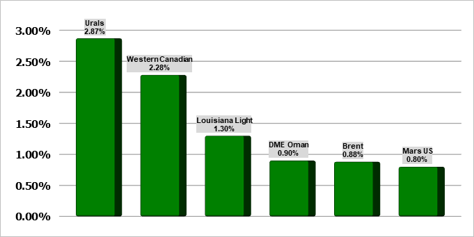 За последнюю неделю скидка на нефть ESPO колебалась в пределах от от $2 до $2,5 за баррель. Месяцем ранее дисконт на бренд составлял $4, в начале 2023-го — $20-25.