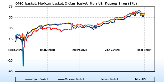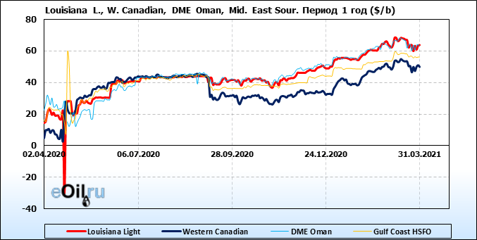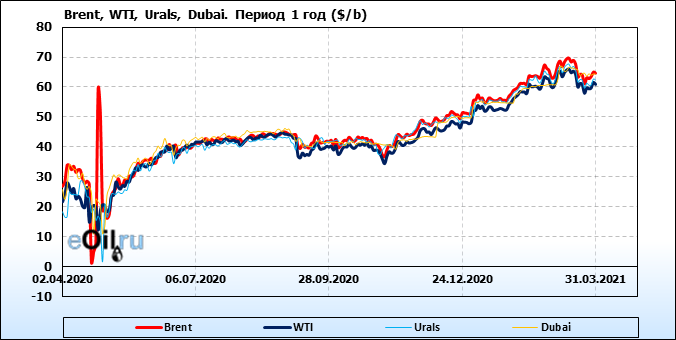 Нефть. Цены по сортам на 31 марта 2021