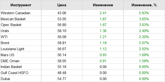 В результате марка Brent подорожала на 0,41% — до 58,7 доллара за баррель. Марка WTI поднялась в цене на 0,57% — до 56,01 доллара за баррель. Таких высоких цен не было с февраля и января 2020 года соответственно.