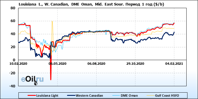 Нефть. Цены по сортам на 4 февраля 2021